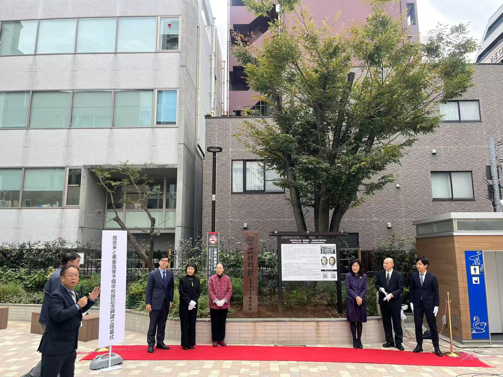 千代田区日中友好協会の活動は、三十年にわたり静かに、しかし確かな歩みを続けてきた。その積み重ねは、単なる交流事業の域を超え、人と人、歴史と現在を結び直す営みへと深化している。その一つの結晶とも言える出来事が、昨年十一月、神保町・愛全公園における東亜高等予備校旧跡への記念碑建立であった。若き日の周恩来が学んだこの場所に、時を超えて新たな記憶が刻まれたのである。この記念碑を寄贈したのは、周恩来平和研究所であり、その背後には、歴史を未来へと手渡そうとする強い意志があった。